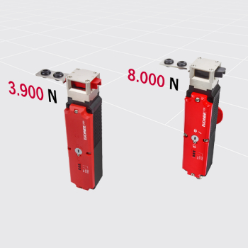 De internationale norm ISO 14119 specificeert testmethoden en grenswaarden voor fabrikanten van vergrendelbare veiligheidsschakelaars. Als na het testen de absolute Fmax-waarde is vastgesteld, dient met een eenvoudige formule de Fzh te worden berekend. De Fzh ligt grofweg 25% lager: Fzh = Fmax / 1,3. Hiermee “dwingt” de norm af dat een vergrendelbare veiligheidsschakelaar in vergrendelde toestand nooit zwaarder wordt belast dan 75% van de Fmax. Deze ISO 14119 is gekoppeld aan de ISO 13849-1&2, en is een voorwaarde voor het verkrijgen van een PL-niveau. Een ingenieuze functie is verborgen in de actuator.